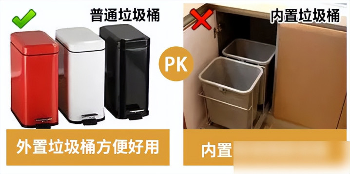 装修时听设计师说隐藏式好看,特意在橱柜留了位置,结果夏天买了串葡萄忘倒,第二天打开柜门差点没吐——里面爬满了小虫子,连抽屉里都有,赶紧把垃圾桶挪到外面,现在每天出门顺手带下去,再也没这破事了。