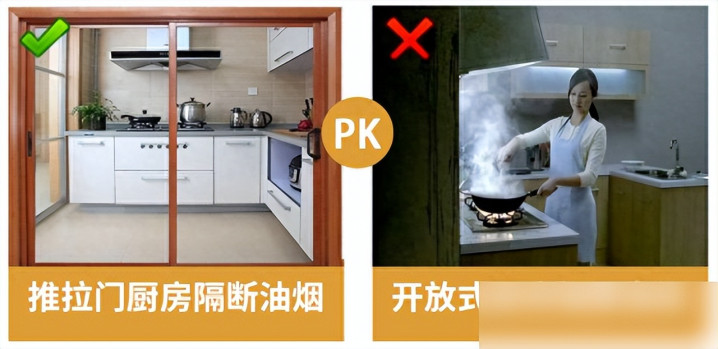 后来我家果断装了封闭门,现在做饭再大的油烟也跑不出去,客厅还是清清爽爽的,你说早知道这样何必当初瞎想?