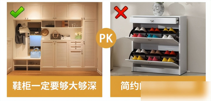 玄关鞋柜我一开始买了个“网红款”小鞋柜,看着好看,结果没两个月门口就堆成了“鞋山”——老公的运动鞋、我的高跟鞋、孩子的小皮鞋,连拖鞋都没地方放,每次客人来都得赶紧把鞋往沙发底下塞,后来咬咬牙换了个到顶的大鞋柜,现在连换季的靴子都能塞进去,门口终于清爽了。